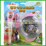 Stainless Steel Food Feeding Bowls With Spoon and Plastic Chopsticks Kids Tableware Set