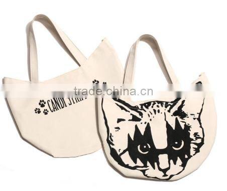 Cat Shape Canvas Shopping Bag,Reusable Shippinmg Bag With Printing Cat FJ6587