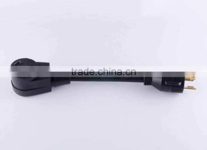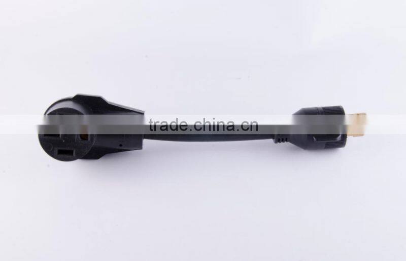 30 ampere 3-prong generator adapter is used for connecting a generator with an 5L-30P locking receptacle to a recreational vehicle with a standard 30 amp RV cord set (TT-30R). They are simple to use and the comfort grip handle with non-slip grooves makes them easy to unplug.