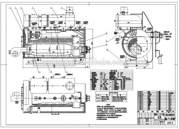 | Boiler model | Rated capacity | Rated pressure | Rated Feed temperature | Rated Steam temperature | Fuel consumption | Thermal efficiency | Weight | Dimensions | ||||