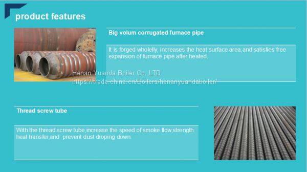 2. It adopts advanced corrugated furnace pipe structure, increasing the heat surface area, and satisfying free expansion of the furnace pipe after heating.