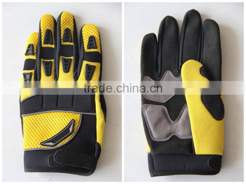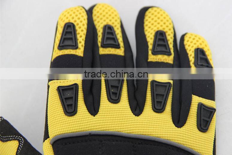 Anti-collision shock tool gloves: palm Microfiber, Microfiber above plus paste blocks, plus internal shock piece, back stairs cloth composite, topped with PVC bumper strip.