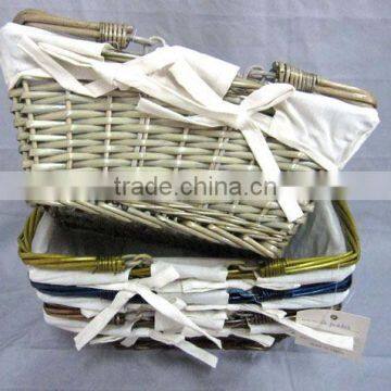 folding shopping basket with foldable handle and cotton fabric lining,easy handled,size:34x24x20cm,willow material.all colorsfolding shopping basket from willow material,all colors and sizes are available.