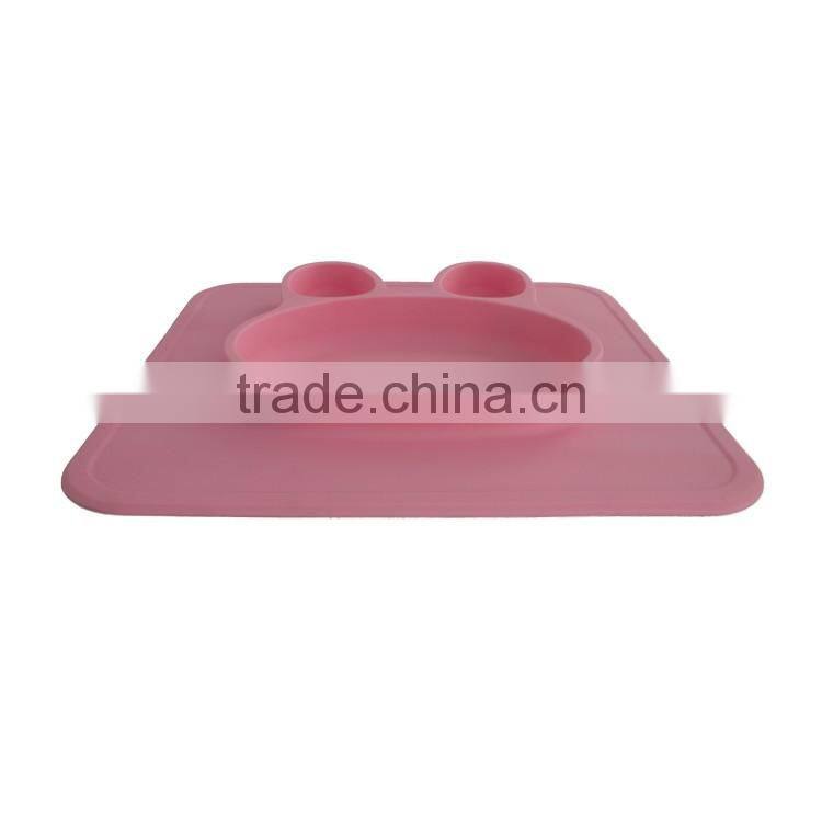 One-piece Silicone Placemat Plate + Bowl,Three Compartments BEAR Shape Baby Placemat Plate All in One Placemat