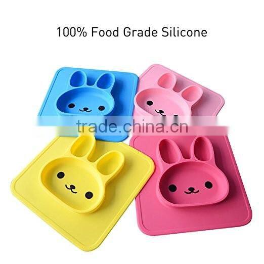 FDA Approved Rabbit Silicone Placemat for Kids, BPA Free Silicone Plate for Kids