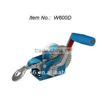 600LB winch,hand winch,boatstrap winch,CE approved,SAE J1853,3:1gear ratio,hardened gears,zinc plated/powdercoat/dacromet/EDC600LB hand winch,strap winch,boat trailer winch,600LB winch