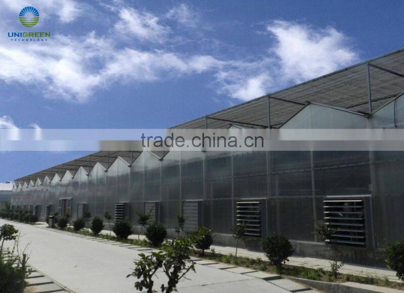 Good Quality Multi Span Polycarbonate Flower Greenhouse With Shading System and Growing Lighting System