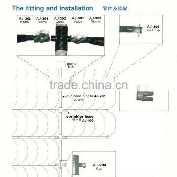 To instsll sprinkler hose irrigation system is very easy, just to lay main pipe and branch sprinkler hose like the picture. You can find farm irrigation is convinient and easy.