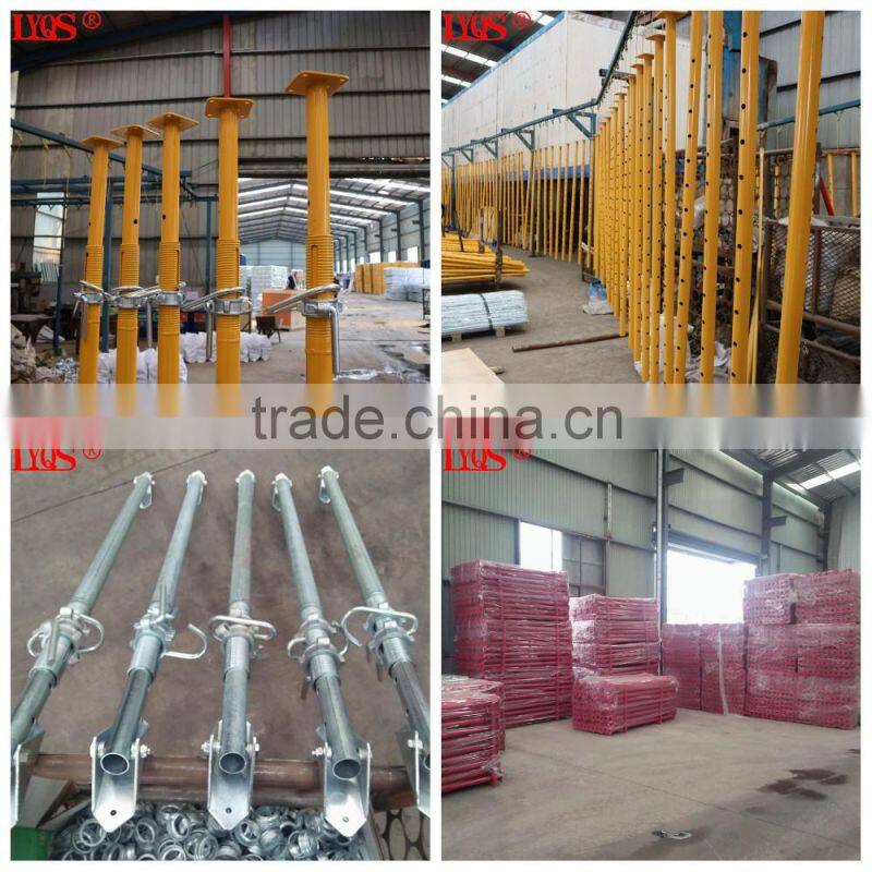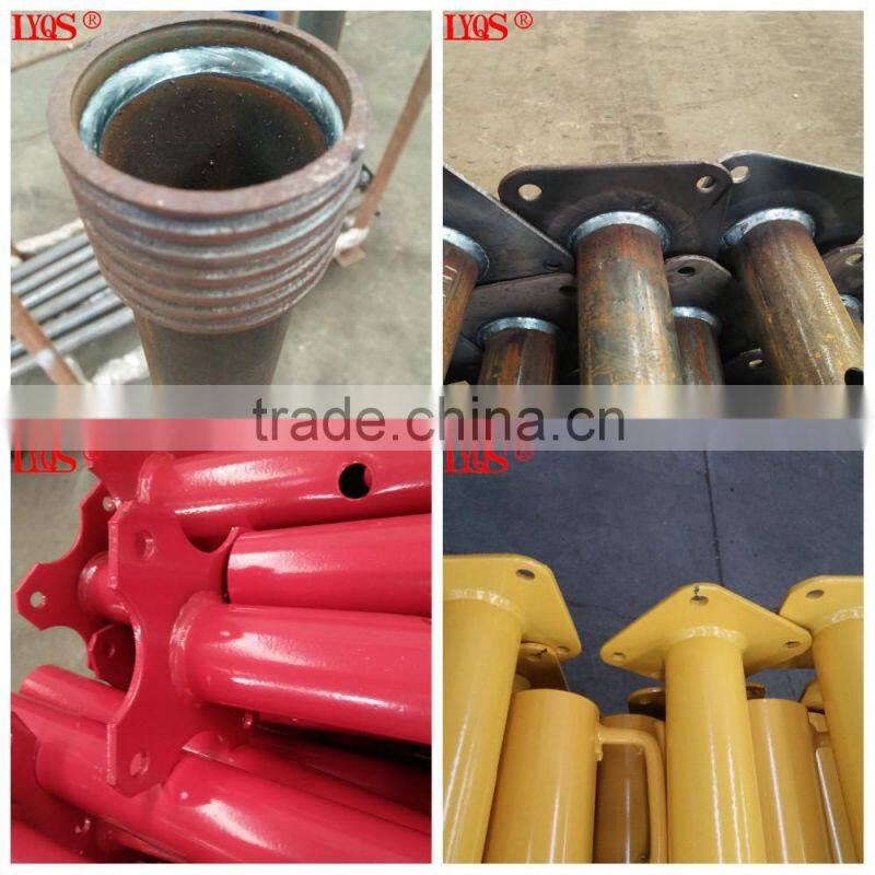Scaffolding shoring prop for slab parts are connected with CO2 arc welding to ensure good craking and deformation resistance.
