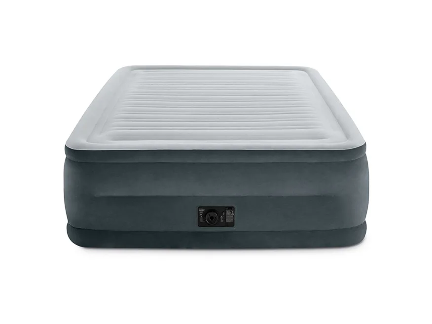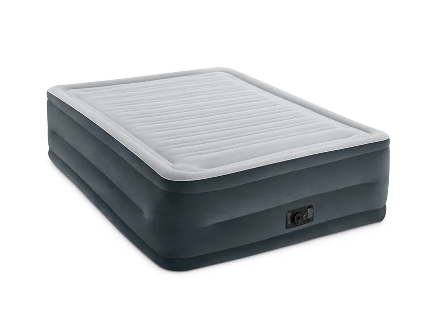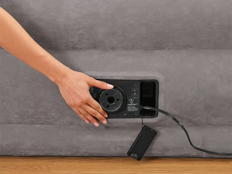 Once inflated, you can use the remote comfort controller to select the firmness you prefer by either adding air or deflating the bed. The bed will always be closer to plush than extra firm since it is an air bed after all, the controller allows you to adjust to your preferred comfort level while lying on the bed. It is made of heavy-gauge PVC with electronically welded seams for lasting quality. To deflate, simply open the valve to deflate the bed in no time. To store, roll it up, fold in the sides and store it until it is needed again.