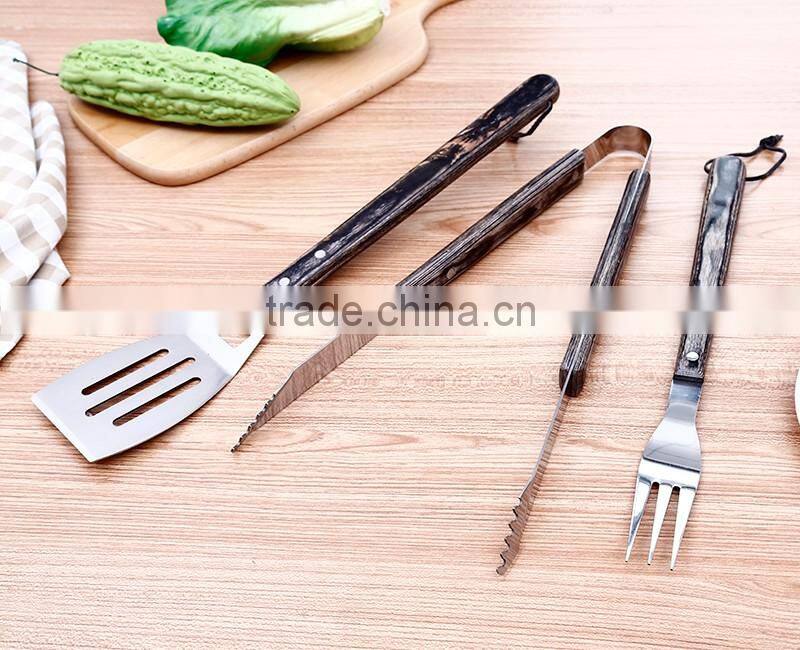 Wholesale Wooden Handle Barbecue Fork Shovel BBQ Tong Set