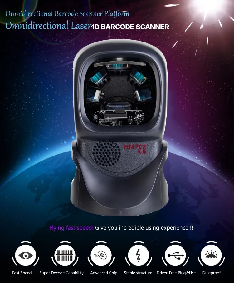 Omnidirectional Desktop General Purpose Supermarket Laser Barcode Scanner/1500 Scans/second