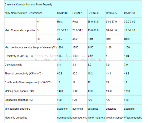 Nickel-chromium, nickel, ferrochrome alloy wire with electric high temperature oxidation resistance, high strength, not soften and a series of advantages. When used in a long time, the same type and the permanent elongation is very small, which is more Cr20Ni80 alloy with excellent comprehensive properties, is to produce high-quality varieties of choice for electric components. The products are widely used in industrial furnace, metallurgy, machinery, household appliances and other industries producing heating elements and resistance elements.