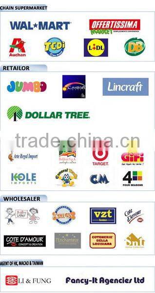 We already co-operate with many local supermarket in Europe & South America.Such as: Wal-mart, FLY(Franch), ABM (Italy), Shogun(Mexico), Yin's (Brazil) , Sorian, Netto, D&S , 99Cents Store, Seven Eleven&Friday (Thiland)etc. All over the world. We are good cooperated sourcing and buying agent of them and well experienced.