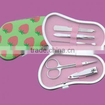 1.5pcs beauty kits,including nail file,tweezer,ear cleaner,nail clipper,eyebrow scissors2.Packed in shoe-shape PU pouch