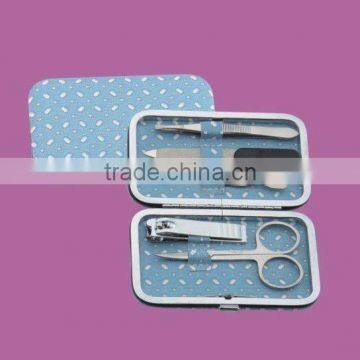 1.5pcs beauty kits,including nail file,tweezer,cuticle pusher,nail clipper,scissors2.Packed in pu case