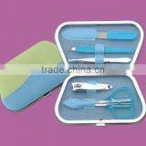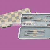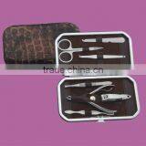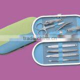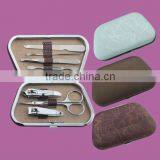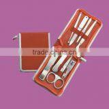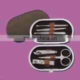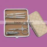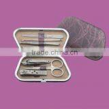 1.Material:including stainless steel nail file,electroplating tweezer,ear cleaner,nail clipper and eyebrow scissors and so on ,packed in PU leather case.