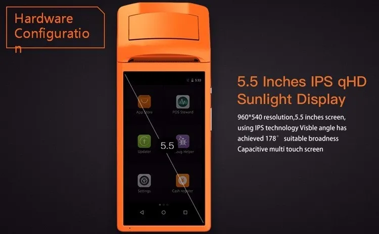 3g Android Mobile 5.5'' Protable Wireless Android POS Terminal With Printer Sim Card
