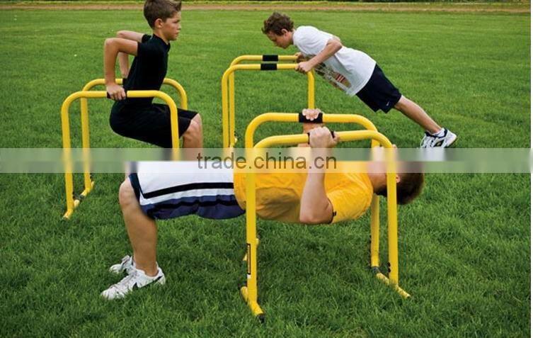 The Parallel Bars is a very popular strength and flexibility training tool that looks a bit bit like parallettes but are more versatile. The Parallel Bars was designed to be a portable tool for traditional strength training exercises and can be used for group fitness classes, in and around your home or by personal trainers for client fitness.
