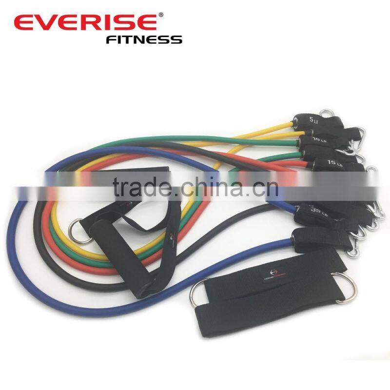 Custom 11pc Resistance Band Sets - With Door Anchor, Handles, Ankle Straps - Stackable Up To 90lbs - For Resistance Training
