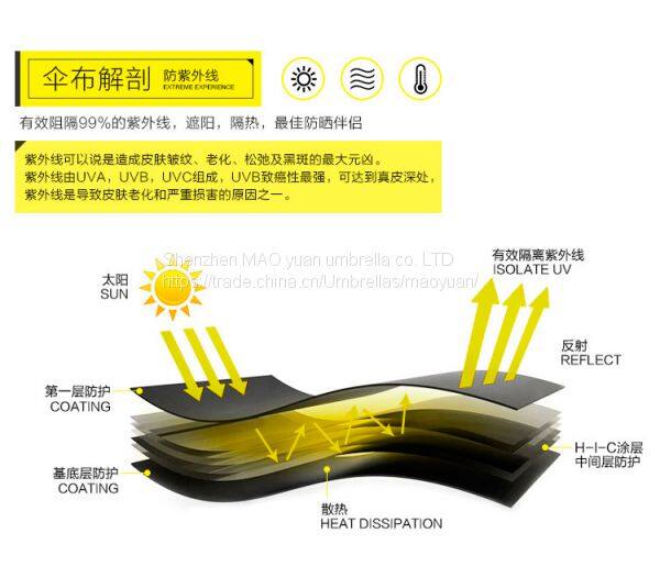 High-end brands abroad have OEM OEM Fulton (Fulton), Kobold (cool), now all the year round for domestic high-end brand Banana umbrella (Manila), Bearcat OEM production, leading to the concept of science and technology of sunscreens as classic double umbrella.