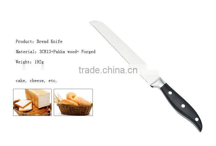 Home > Products > Single Kitchen Knife > 8"Bread Knife, Forged and Pakka Wood Handle Black Color