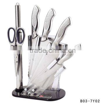 7inch chopper knife,7inch vegetable knife,8inch chef knife 4inch fruit knife,chicken boon scissor,and 1pcs sharprener |