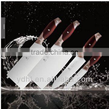 7'' bone cleaver, 7'' meat cleaver, 7'' chef , 3.5'' paring 3.0-2.0mm thickness |