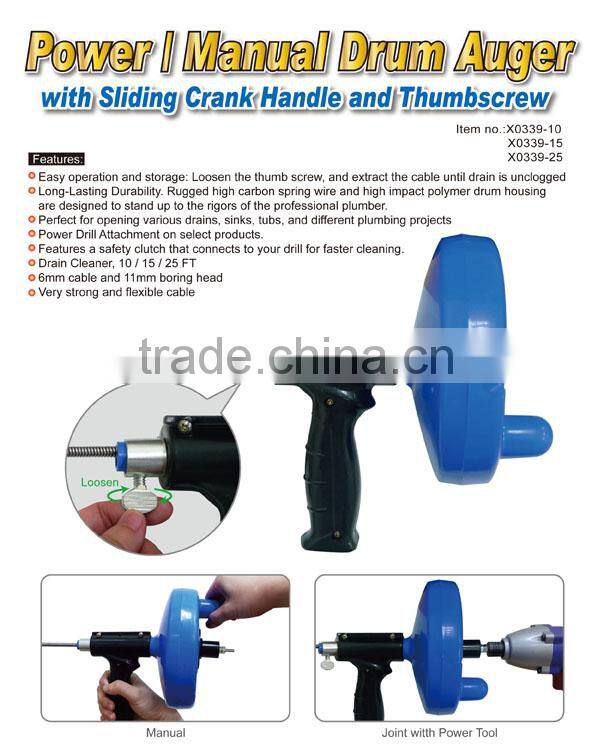 * Easy operation and storage: Loosen the thumb screw, and extract the cable until drain is unclogged