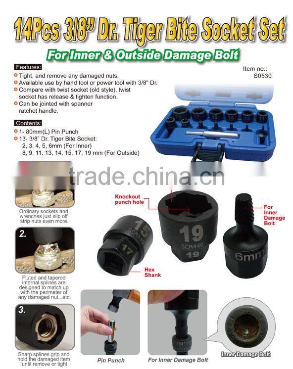 14Pcs 3/8” Dr. Tiger Bite Socket Set