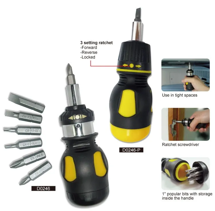 6 In 1 Stubby Ratchet Screwdriver