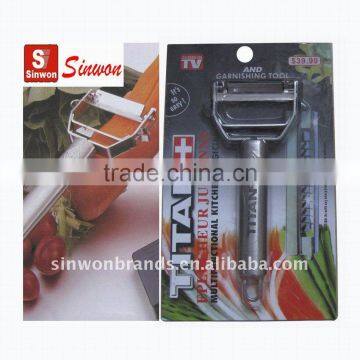 Also included is a special slicing board to turn your Titan shaver into a super fast mandolin slicer. Simply place the mandolin on the shaver to transform it into a turbo slicer. Just watch the Titan turbo through - making perfect slices time after time.Dishwasher safe,Plus as a special bonus- the amazing garlic peeler. You roll and it peels! A perfect result every time. You can also use the Titan to garnish fruits and vegetables to make fabulous eye catching creations like a true professional at home. Hard or soft big or small - the Titan shaver does it all.