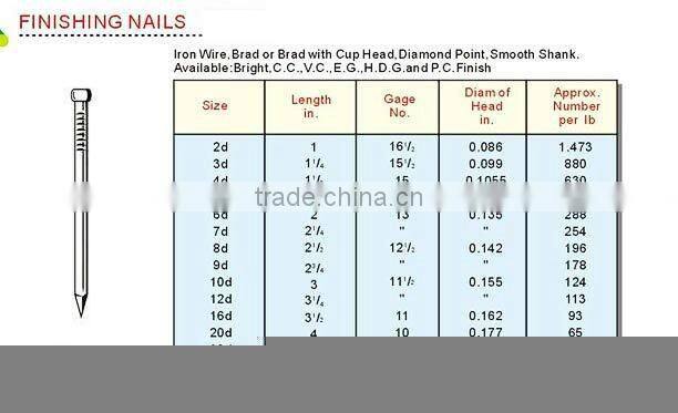 Finishing nails specifications:
