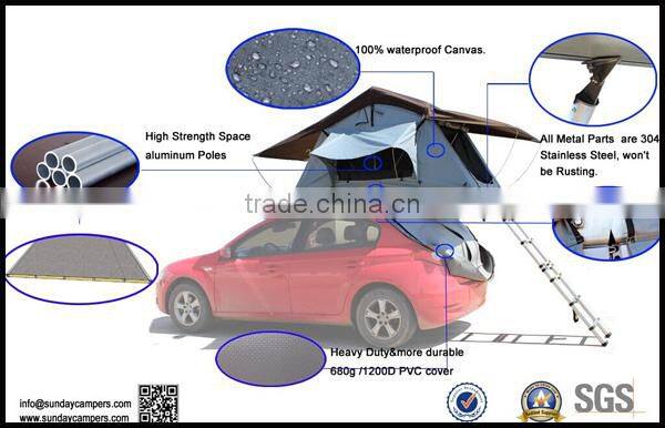 2. Travel cover of our roof tents was made by 1200D/680gsm (not 800D/550gsm). More strong and durable. |