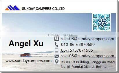 Sunday Campers Co.,Ltd established in 2009,who mainly deal with roof top tent,awning tent, swag, trailer tent, and other camping tent.Through many years of development we already develop into the leader of roof top tent in China. Our factory is located in Hebei Province, and our sales teams in Beijing.