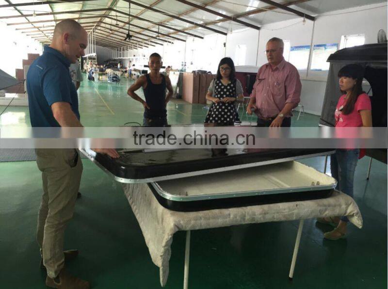 Roof top tent Latest model roof top tent , offer spacious space for campers , what is more , safe sleeping room is important for them . It avoid stay at grass , soil etc . the roof top tent was made from 100% waterproof ripstop canvas. The frame of the rooftop tent is made with anodized aluminium to ensure stability while remaining light in weight . roof top tent comes with a vinyl cover and is used to cover the tent when driving. Sleeping on top of your vehicle can avoid invasions by insects and leave you peace of mind of being attack by any animal. roof top tent is design to suit most roofbar. Its universal mounting system suit most square and Aero roof bar.