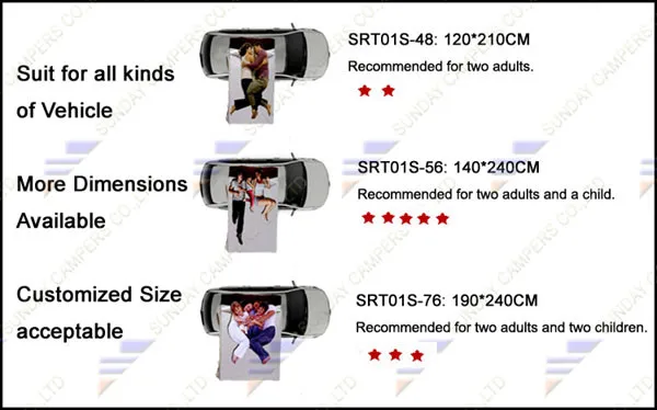 Sunday Campers Co.,Ltd established in 2009,who mainly deal with roof top tent,awning tent, swag, trailer tent, and other camping tent.Through many years of development we already develop into the leader of roof top tent in China. Our factory is located in Hebei Province, and our sales teams in Beijing.