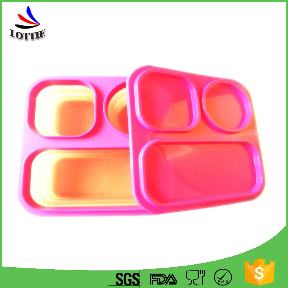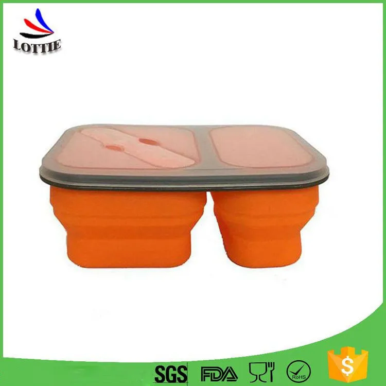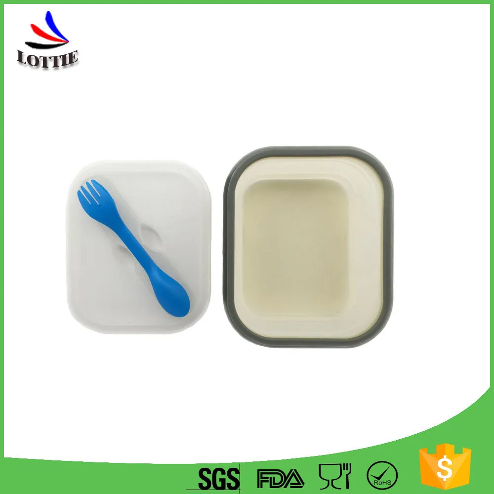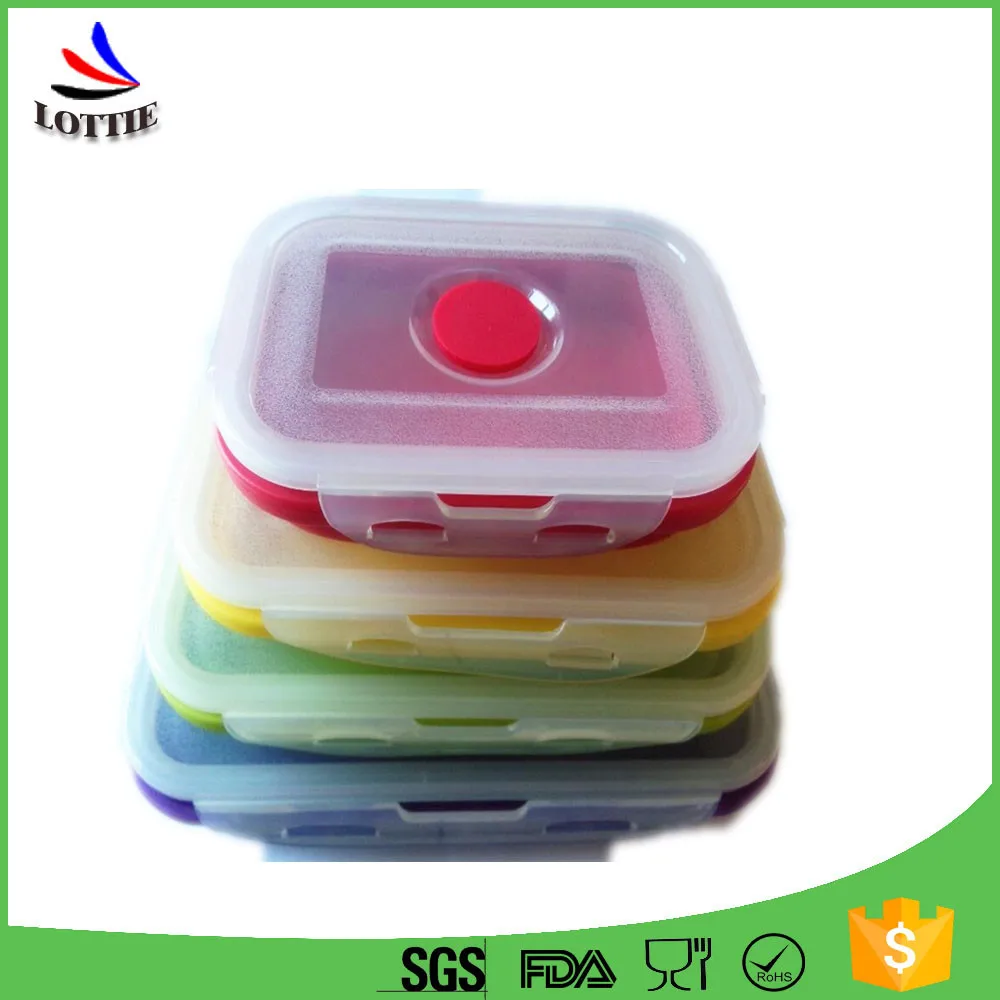 FDA&LFGB Eco-friendly Colorful lunch box food grade silicone folding lunch box with cover