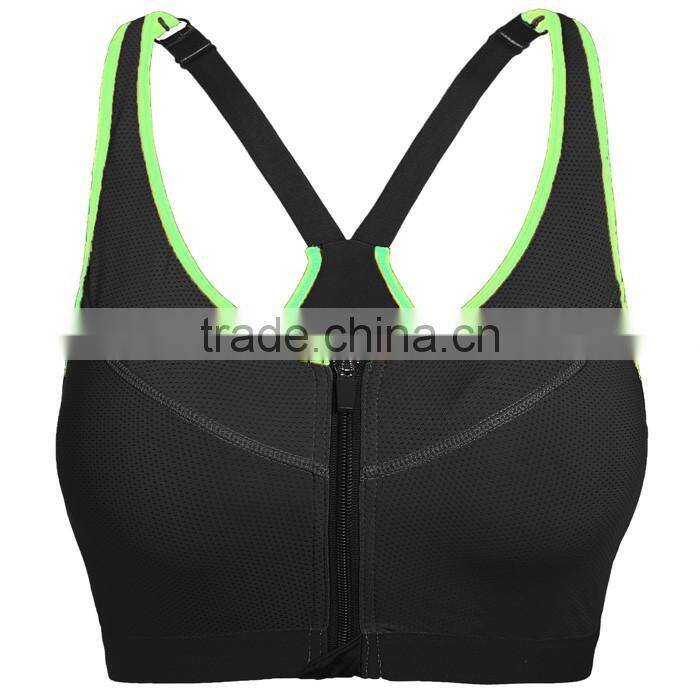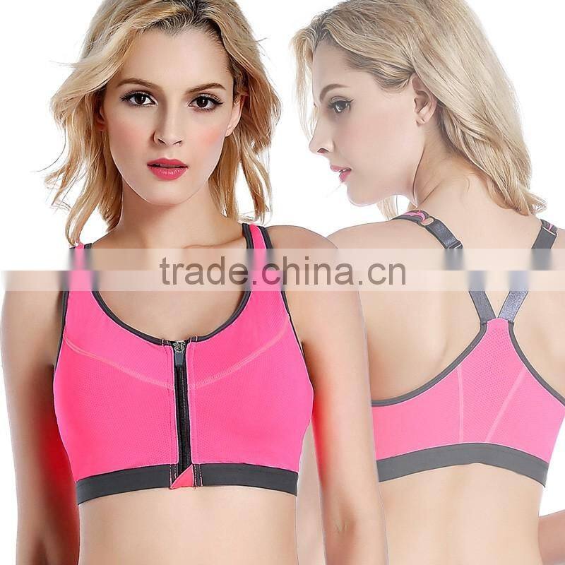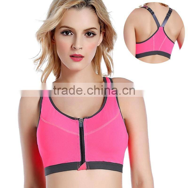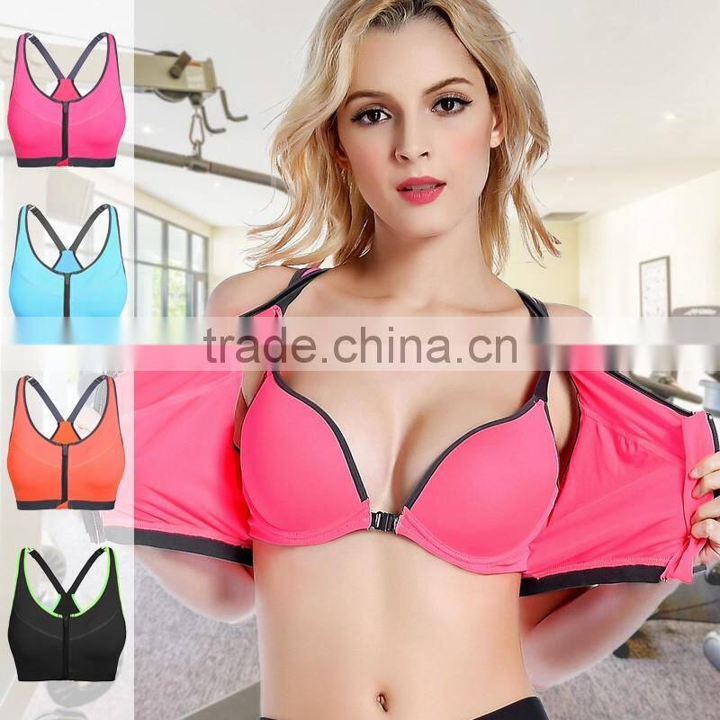 Women's Hight Support Workout Active Plunge Front Fastening Zipper Sports Bra