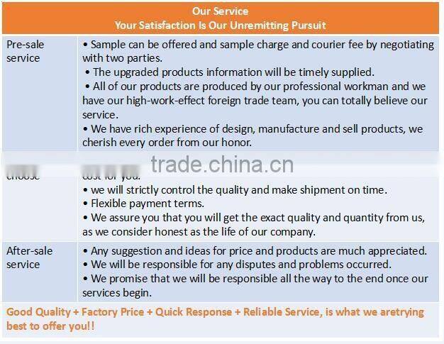 ★In order to improve the level of management,satisfy the demand of our clients,we passed the quality management system of ISO 9001. “ Good Reputation,Efficient Management and Excellent Service” make us take up an advantageous position in the world markets.
