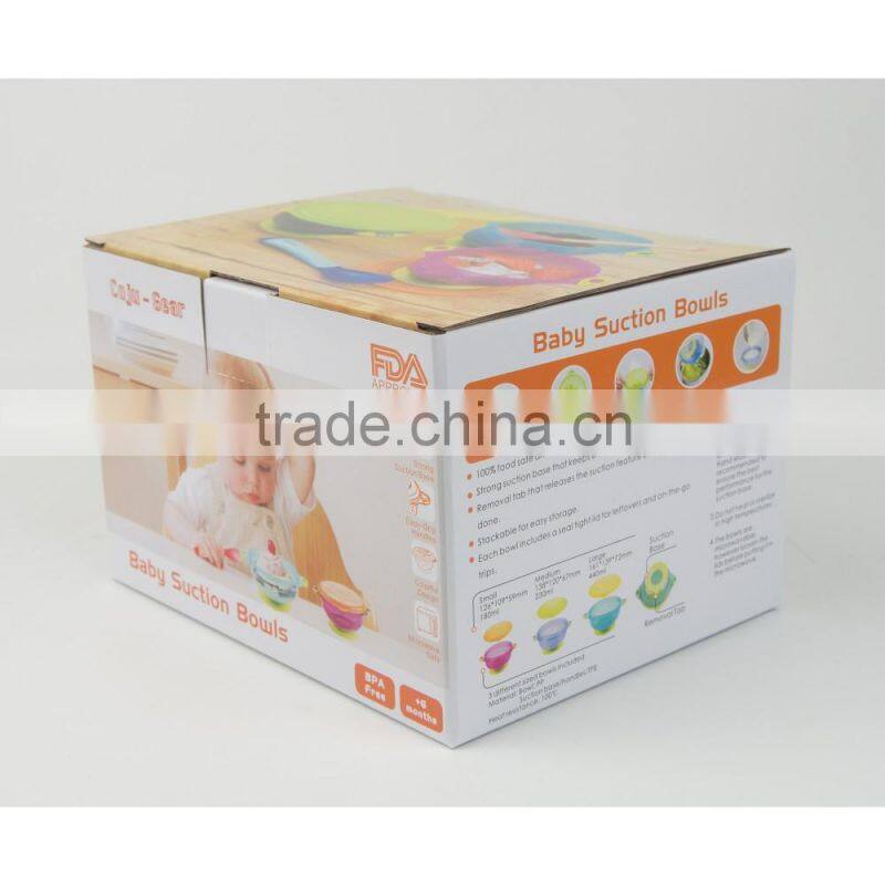 Customerized Baby Feeding Set: Suction Baby Bowl + Mash Bowl + Spoon + Bib, Color Gift Box, Private Labeling