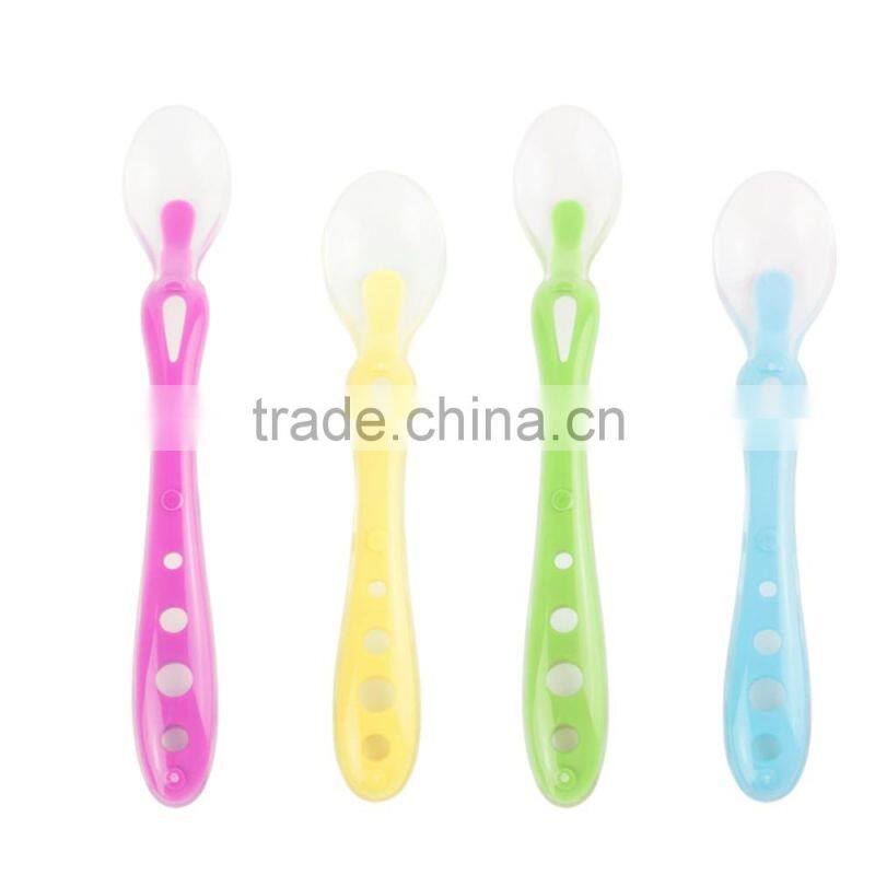 2017 New Products High Quantity Baby Goods Temperature Sensitive Plastic Baby Feeding Spoon Fork, Baby Gift