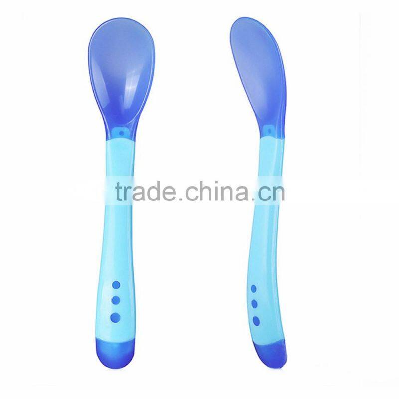 2017 New Products High Quantity Baby Goods Temperature Sensitive Plastic Baby Feeding Spoon Fork, Baby Gift