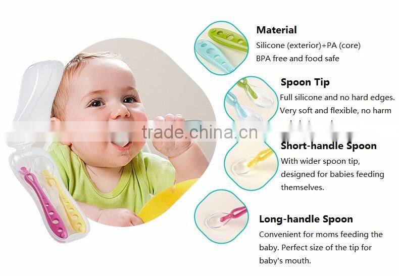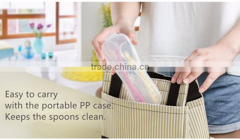 New Arrival Feeding Supplies BPA Free Silicone Soft Tip Baby Children Spoon, With Storage Case