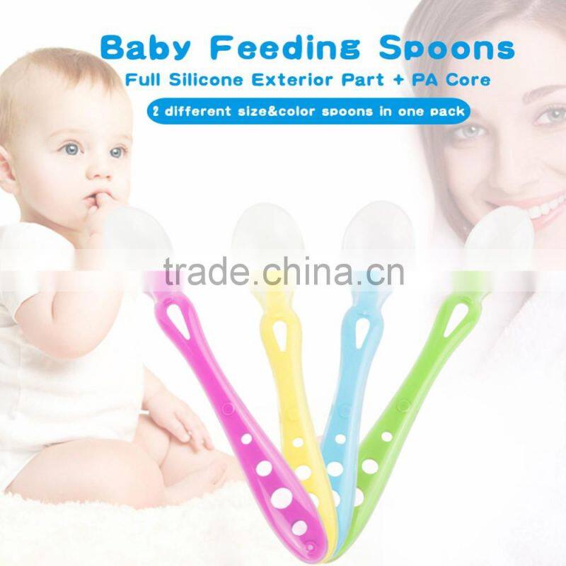 New Arrival Feeding Supplies BPA Free Silicone Flexible Tip Baby Kids Spoon, Gift Set