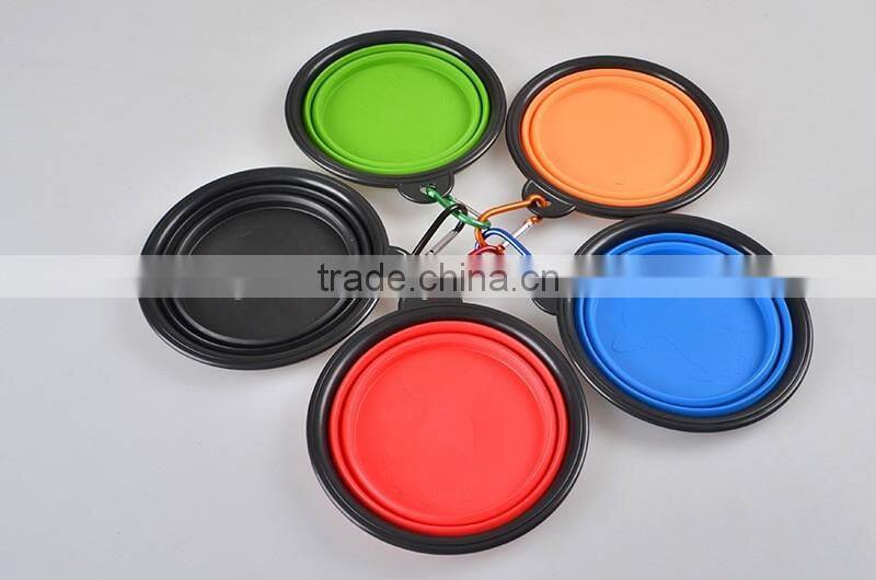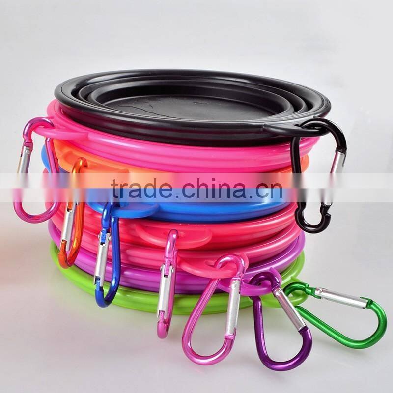 Reusable Pet Food Bowl Food Grade Silicone Food Water Feeding Foldable Pet Bowl With Carabiner