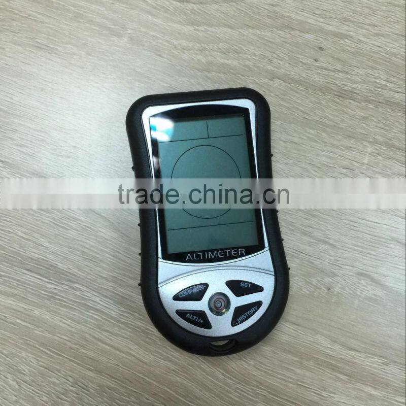 Digital Altimeter, with digital barometer, digital compass, weather forecast, clock, calendar, and thermometer. The device is based on the technology of electronic bearing sensor and barometric sensor.