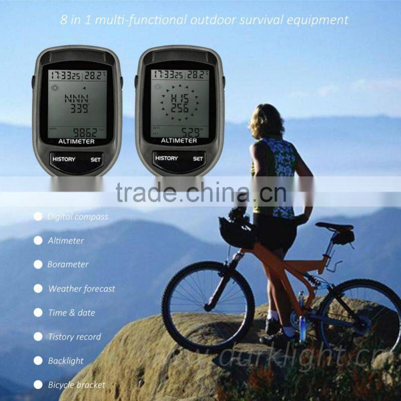 Name: Outdoor Survival Equipment 8 in 1 Portable Digital Compass Altimeter with Thermometer Clock and More