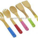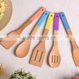 Wholesale Bamboo Utensil With Color Handle and Logo Carved/kitchen Cooking Bambu Tool
