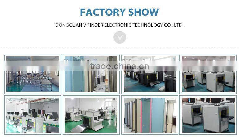 DongGuan V Finder Electronic Technology Co;Ltd is a professional Large Scale manufacture of all types of Industrial metal detector,Security metal detector . Security x ray machine .check weigher integrating development and production together . All of our products concentrate and center on detection measurement technology .Our mainly products includes walk through metal detector.hand held metal detector.food metal detector .industrial metal detector .ground metal detector . Security x-ray baggage luggage scanner . Check weigher .weight detector. Needle inspection and detector and related products .Our company Located in the manufacture of capital "DongGuan City .Between Guangzhou and HongKong. We enjoy convenient Express. Air and Sea transportation Our company employee more than 50 workers. Through the efforts of our entire stuff . Our products already widely used in the international market.We have the customers in USA. Australia .Brazil.Educator.Germany.Greece Russia ,Nigeria .Saudi Arabic ,Ukraine.Bulgaria and other 40 countries . On last and this year our security metal detector and x ray baggage scanner successful finished support 2015 Nigeria President election security Mission. Outstanding finished the GuangDong International Modern furniture Fair and the 2015 Sudirman Cup Security protection . Our company promise : reasonable prices, short production time satisfactory after-sales service Mutual development, mutual benefits Our company can supply :Free logo printing Free model design Free solution adviser Full OEM and ODM We have a improve PMC control .Quality assurance and strictly Quality control Section . From material enter into our basis and before shipping . It will go through a overall strict inspection . We welcome new and old customers contact us for future business relationships and mutual success!